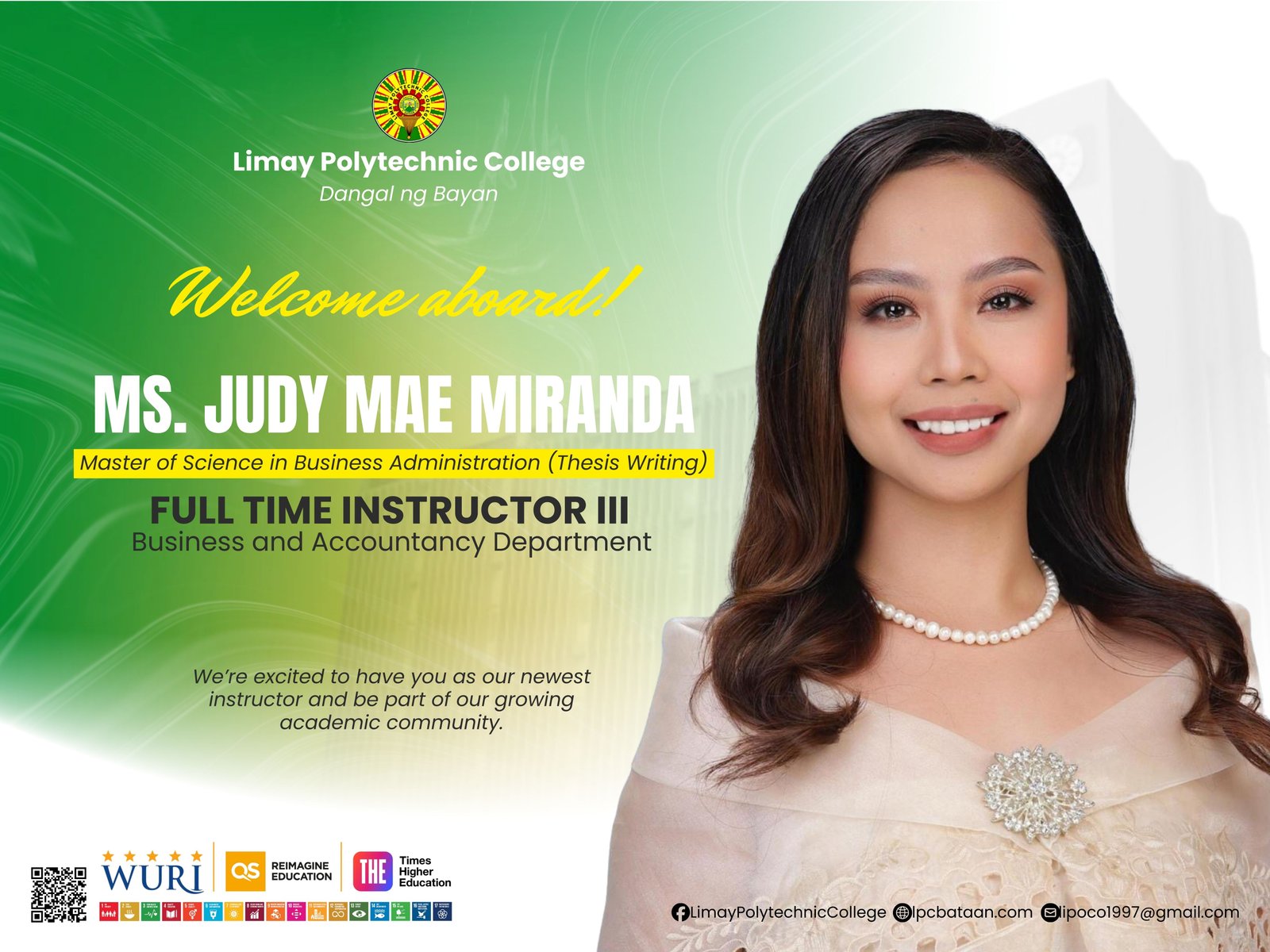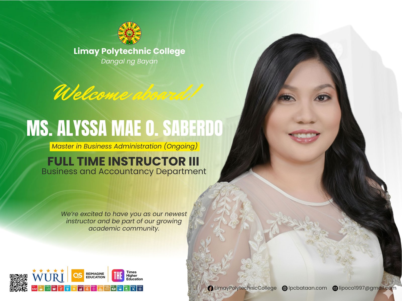 Limay Polytechnic College welcomes its newest faculty members, who officially join the institution this academic year. Their addition strengthens LPCβs commitment to delivering quality instruction, advancing academic excellence, and serving the community.