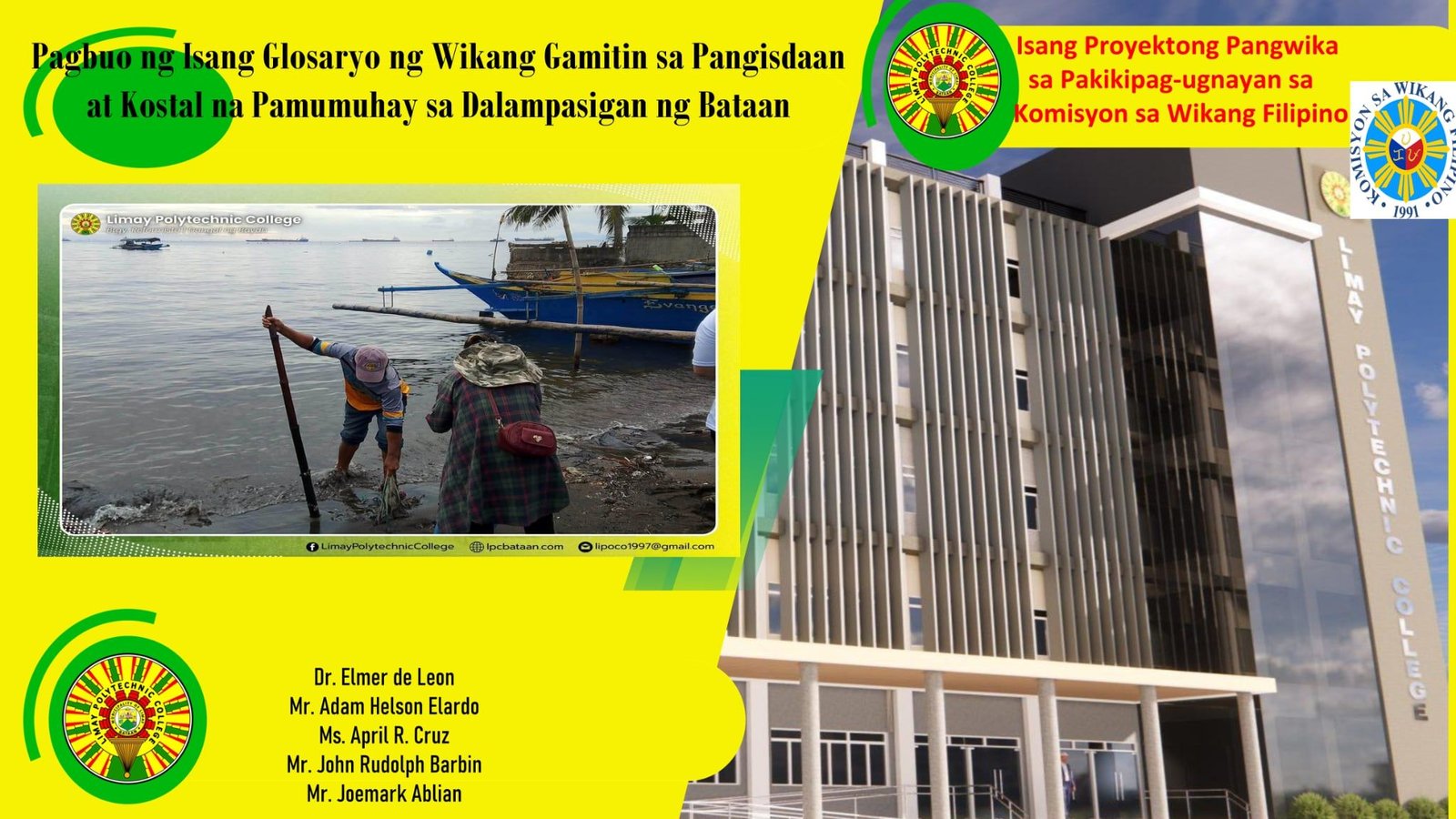 Ang naturang proyekto ay tumutukoy sa Pagbuo ng Isang Glosaryo ng Wikang Gamitin sa Pangisdaan at Kostal na Pamumuhay sa Dalampasigan ng Bataan.