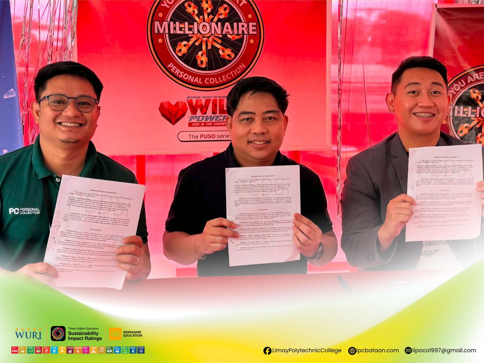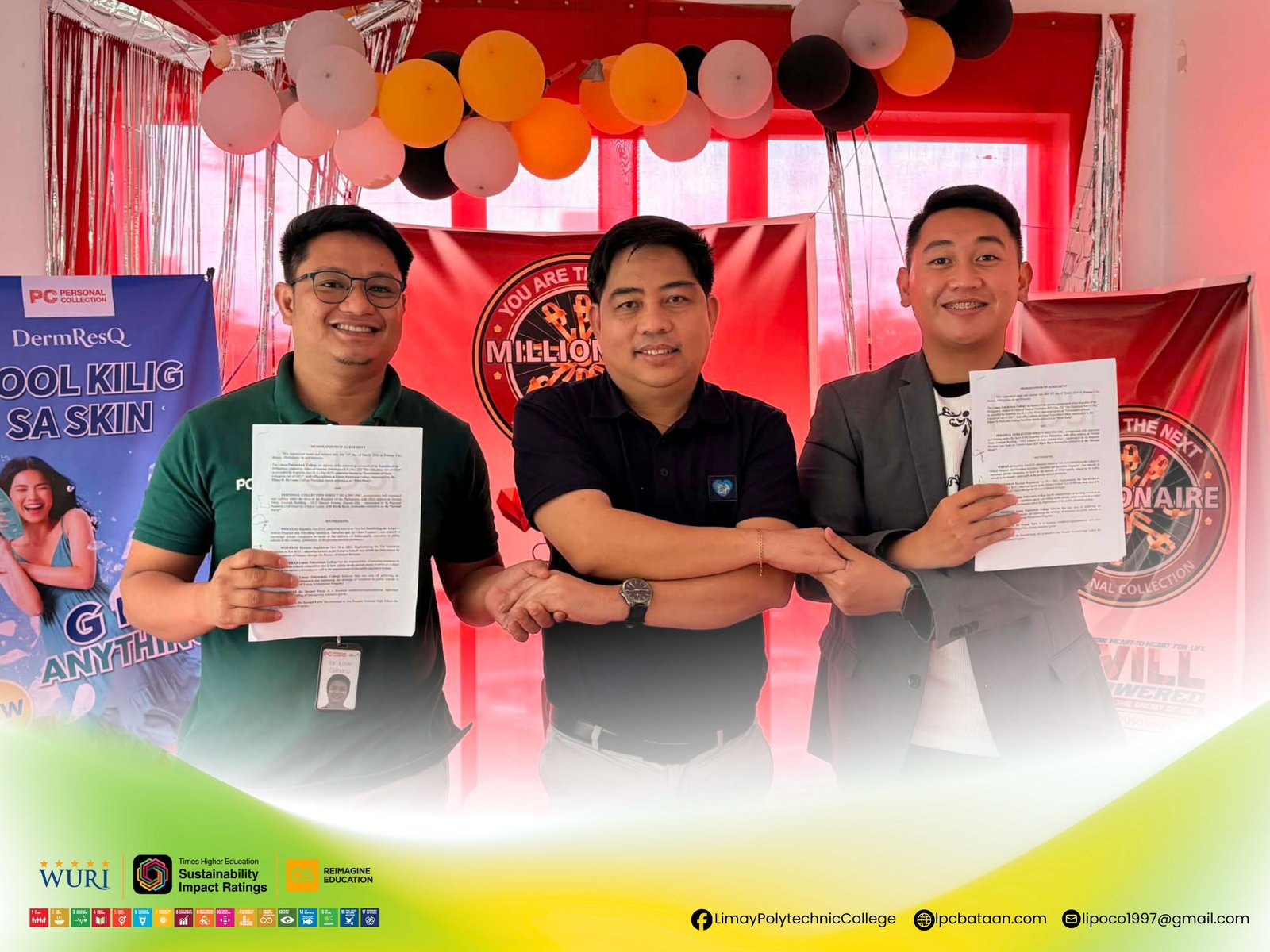 Limay Polytechnic College, through the Department of Business and Accountancy (DBA), finally sealed its partnership with Personal Collection, a private wholesale and retail company in the country, and signed a memorandum of understanding at the latter's office in Balanga City on March 13.