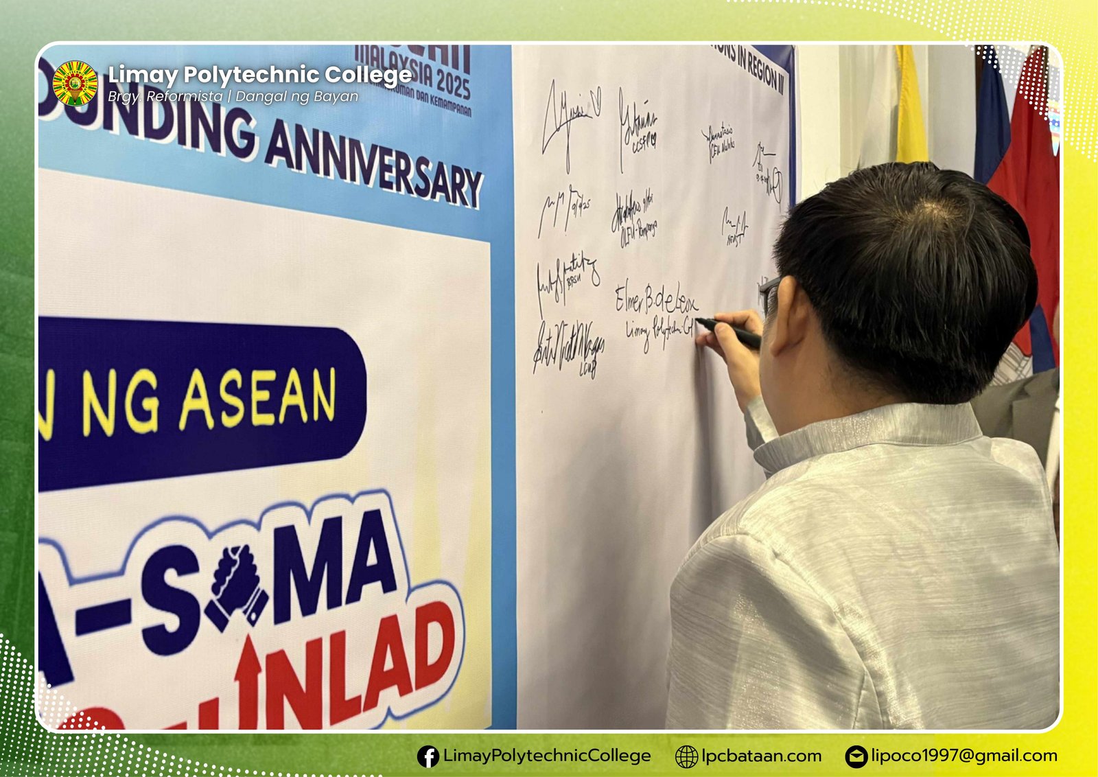 Limay Polytechnic College (LPC) President Dr. Elmer B. De Leon joined the rest presidents of select 26 higher education institutions in Central Luzon, with five from local colleges in the Hiraya: ASEAN Conference 2025 held at Hotel Seoul, Clark City, Pampanga, September 04.
