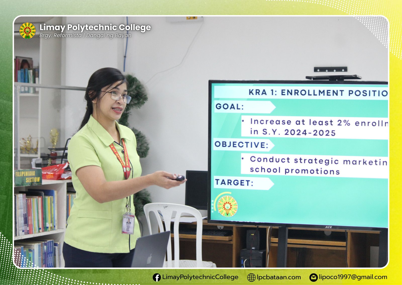 For clarity, congruency, straight-forward and comprehensive presentation, everyone used LPC's Goal-Objective-Target-Accomplishment (GOTA) model along respective key result areas or items. The accomplishments, both quantitative based on targets and qualitative along interpretation rubrics were analyzed and described.