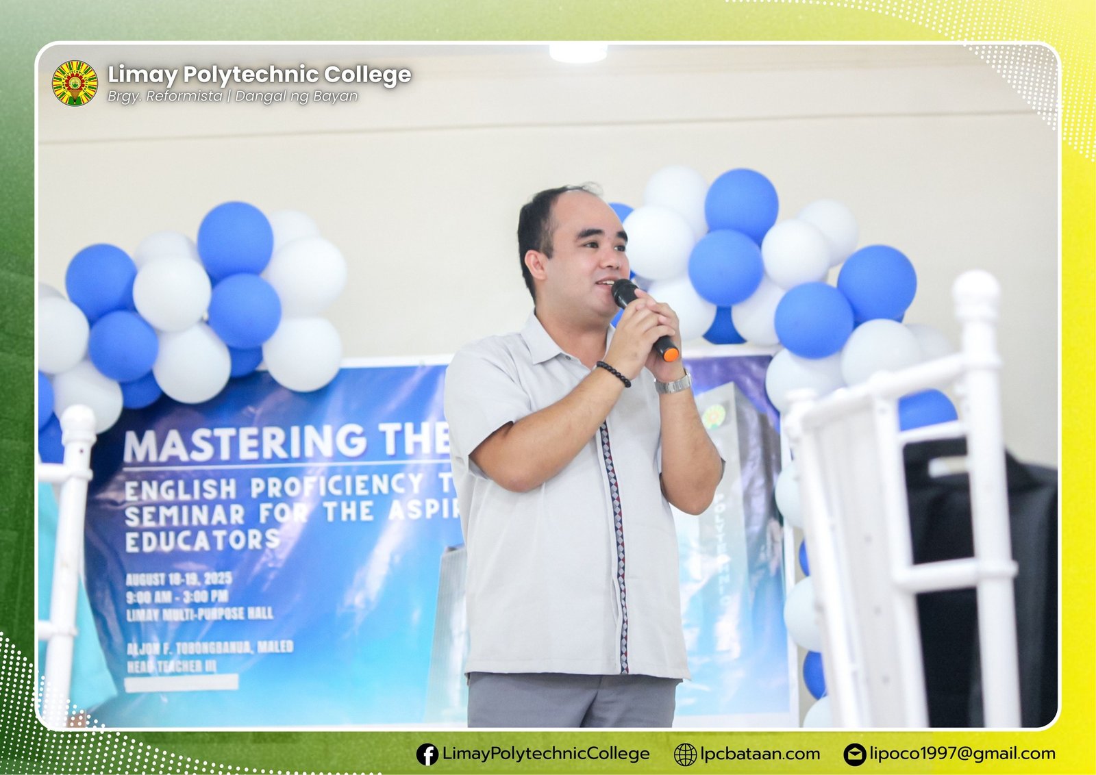 The BSE-English major students at Limay Polytechnic College were trained on English proficiency enhancement dubbed as "Mastering the Medium" prior to their deployment to their respective cooperating schools at the Limay Multipurpose Hall, August 18-19.