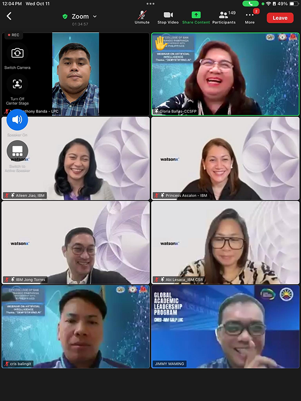 Limay Polytechnic College Quality Assurance, Linkages, Internationalization and Training for Institution (QUALITY) and Management Information System (MIS) offices joined a webinar on Artificial Intelligence (AI) dubbed as “Demystifying AI” on October 11, 2023 via zoom conducted by the City College of San Fernando, Pampanga, in partnership with IBM Philippines. Considering AI to be the most prevalent trend in today’s social development and education, LPC saw the relevance and significance of the said webinar. The latter’s intense desire for such kind of webinar topic was made realized through the generous heart of the CCSFP, through its president and concurrently, the Association of Local Colleges and Universities – Region 3 Dr. Atty. Gloria Banas by inviting LPC despite a very limited capacity to accommodate participants in the zoom platform.