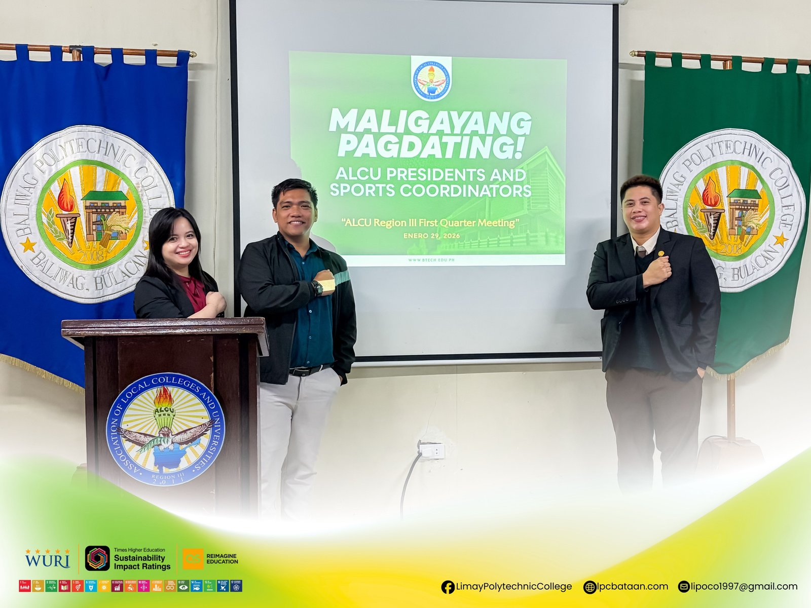 Limay Polytechnic College participated in the Meeting with local college presidents and cultural and sports coordinators in Region 3, organized by the Association of Local Colleges and Universities-Region 3, held at the Politeknikong Dalubhasaan ng Lungsod ng Baliwag, Bulacan on January 30.