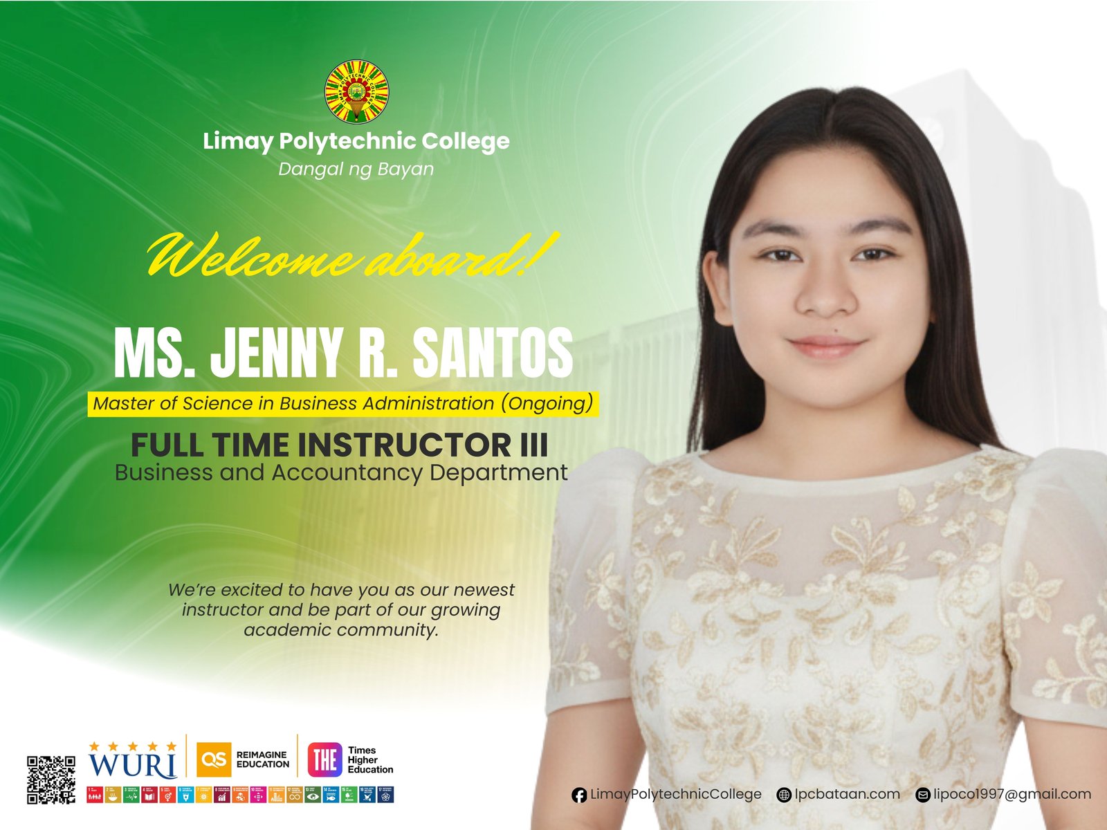 Limay Polytechnic College welcomes its newest faculty members, who officially join the institution this academic year. Their addition strengthens LPCβs commitment to delivering quality instruction, advancing academic excellence, and serving the community.