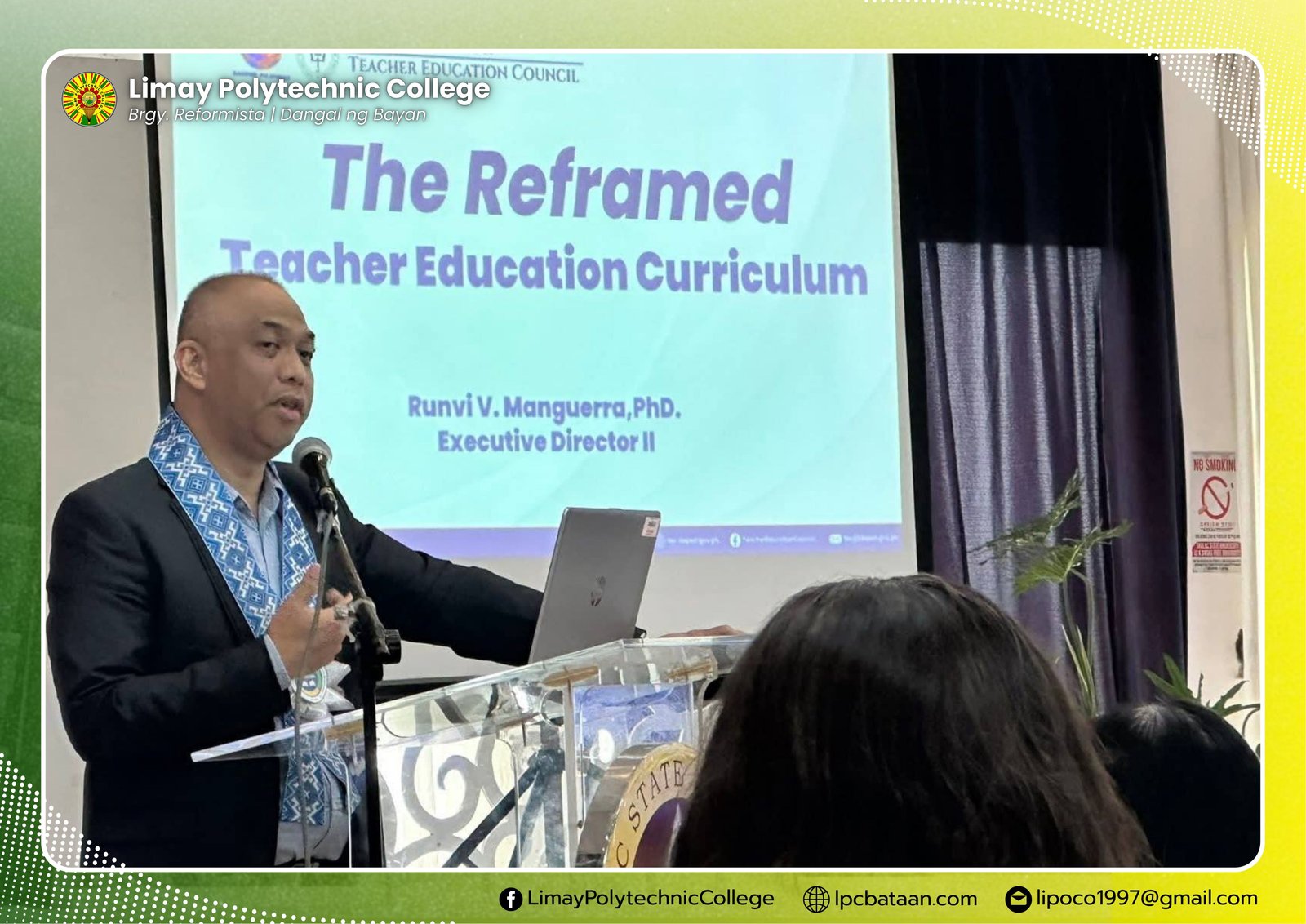 Limay Polytechnic College, thru Ms. April Cruz, head of Teacher Education Department; and Ms. Jana Marie Mangune, coordinator, attended the Teacher Education Conference conducted by the Association of Deans of Colleges of Education in Region 3 (ADCER3) at Tarlac State University, September 24.