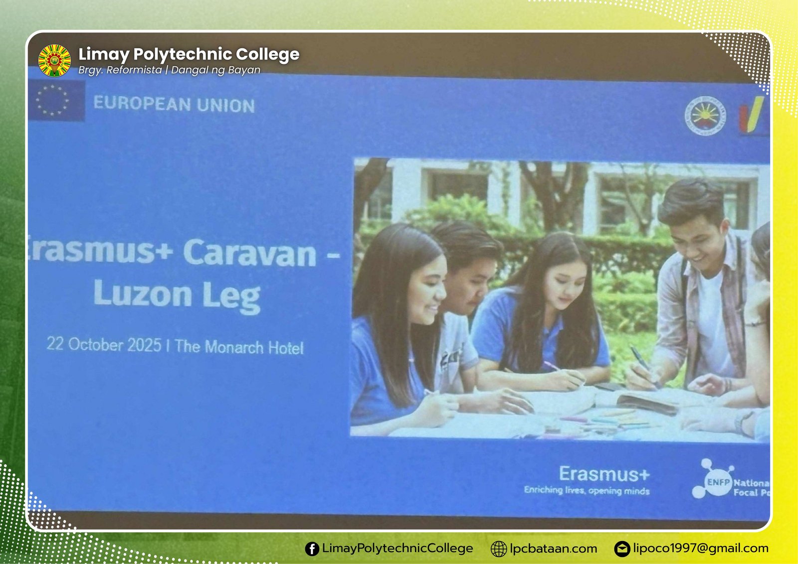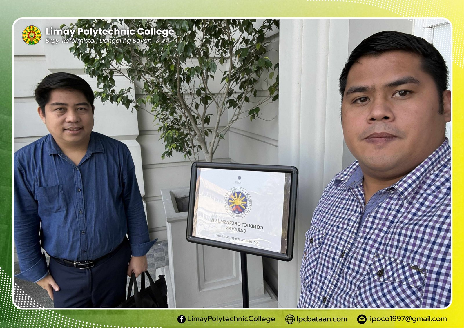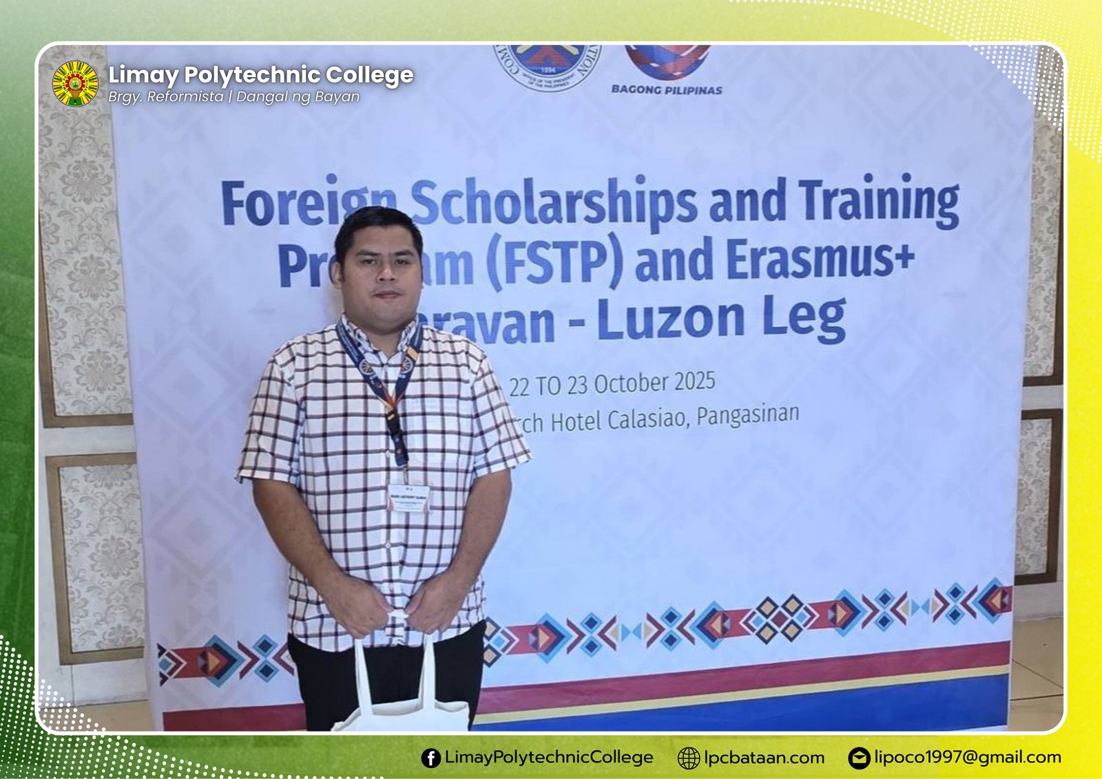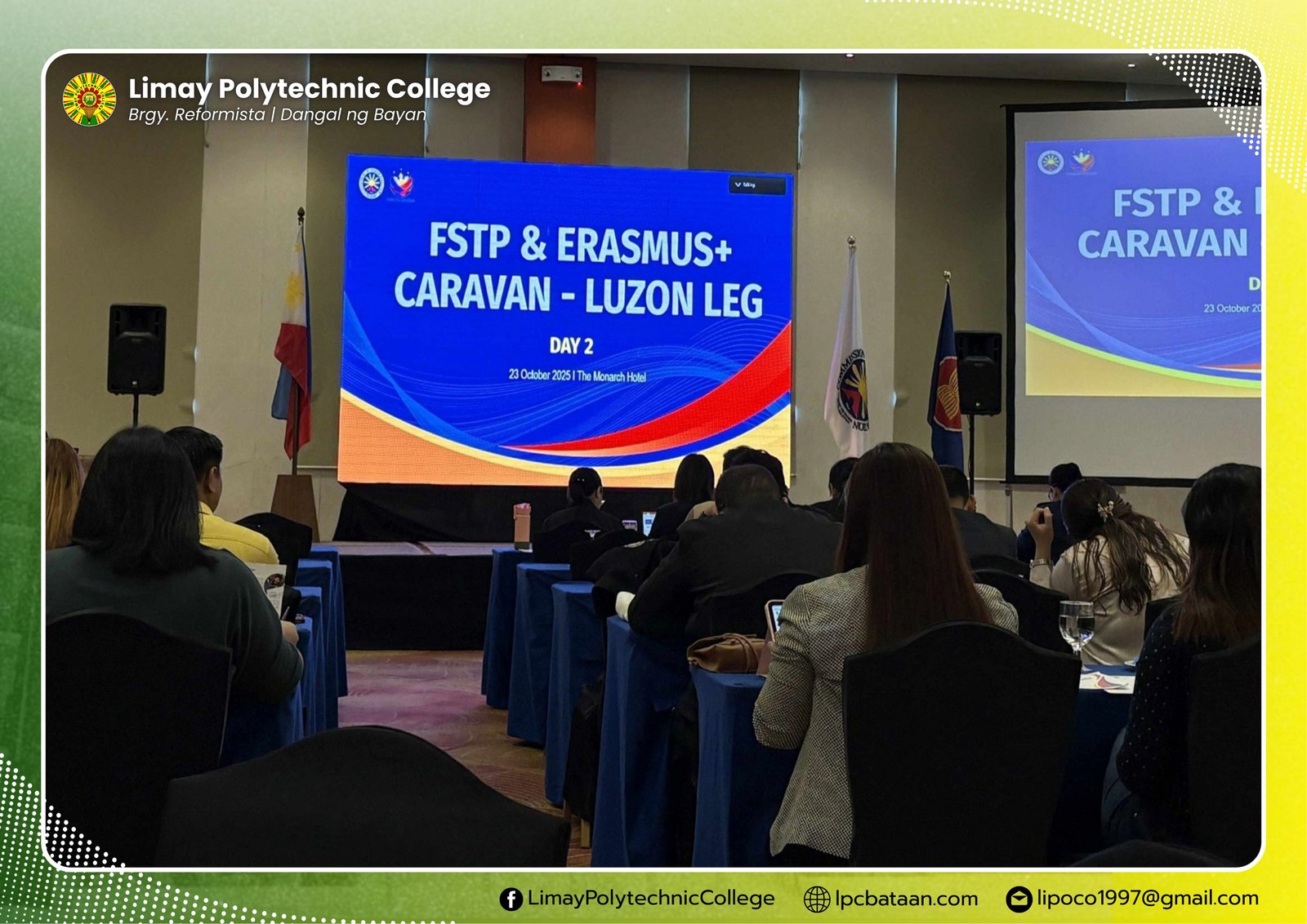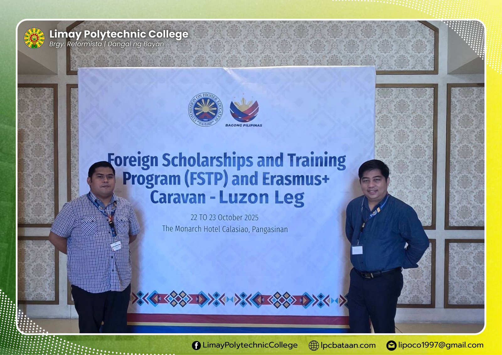 Limay Polytechnic College (LPC) President Dr. Elmer de Leon, concurrently, the director of Internationalization, with Mr. Mark Anthony Banda, QUALITI officer and designated deputy of Internationalization Unit, attended the Foreign Scholarships and Training Program (FSTP) and Erasmus + Caravan - Luzon Leg at the Monarch Hotel, Calasiao, Pangasinan, October 22-23.