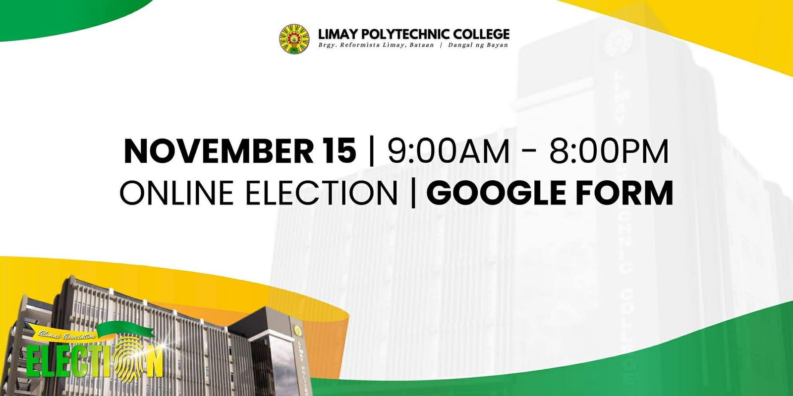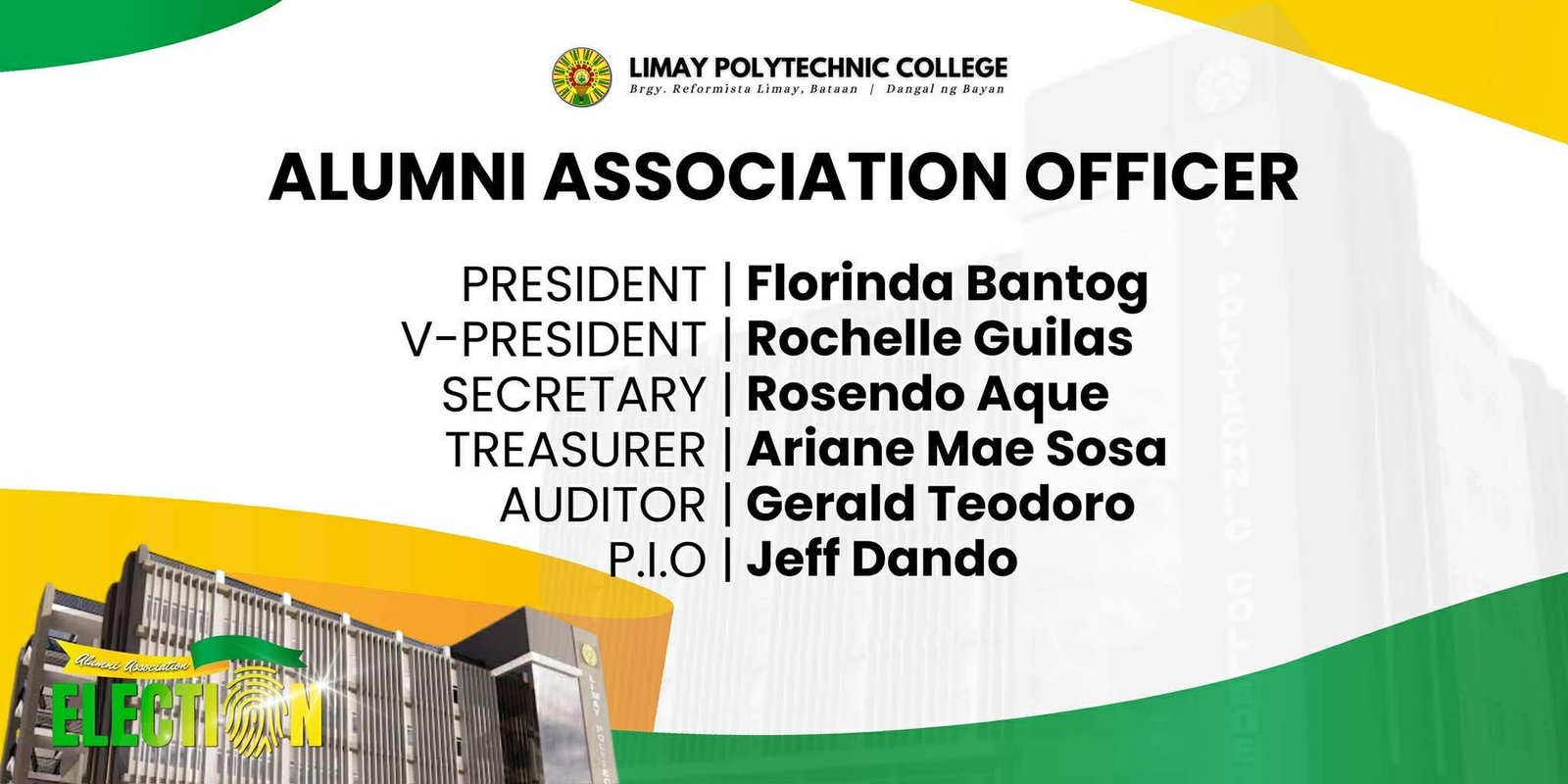 Limay Polytechnic College (LPC) concluded its Alumni Association elections held via Google Forms on November 15, with 148 valid votes determining the new set of officers.