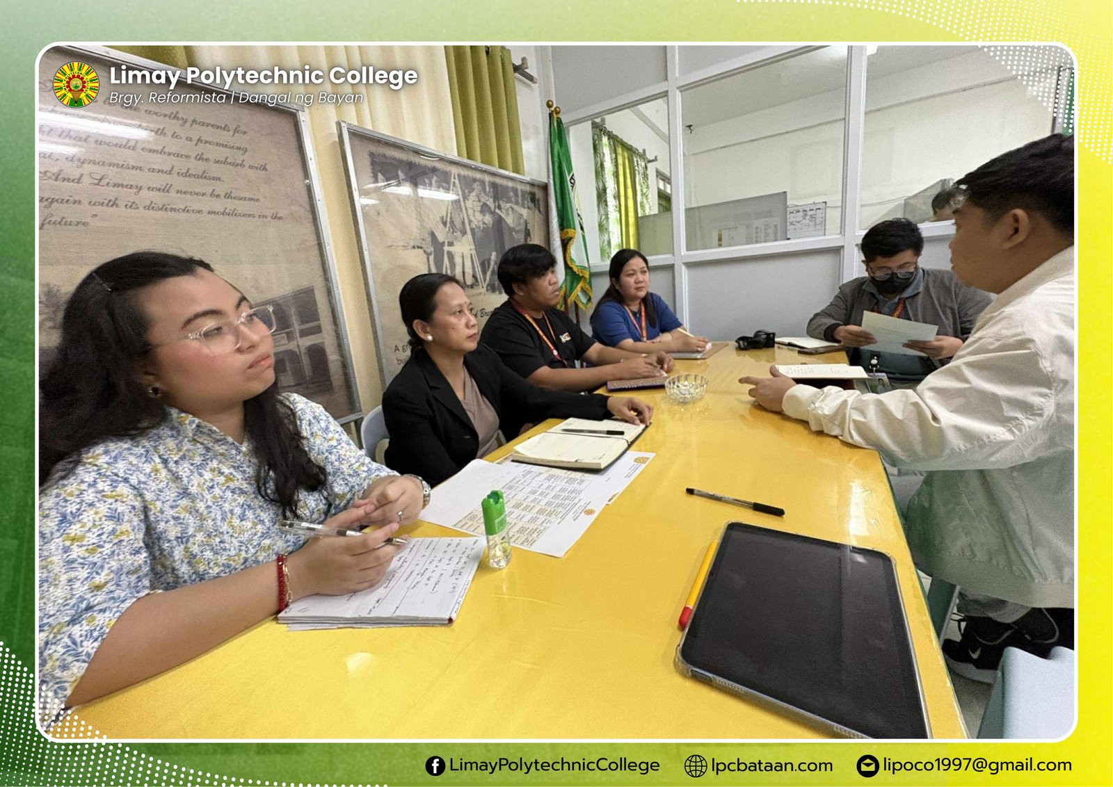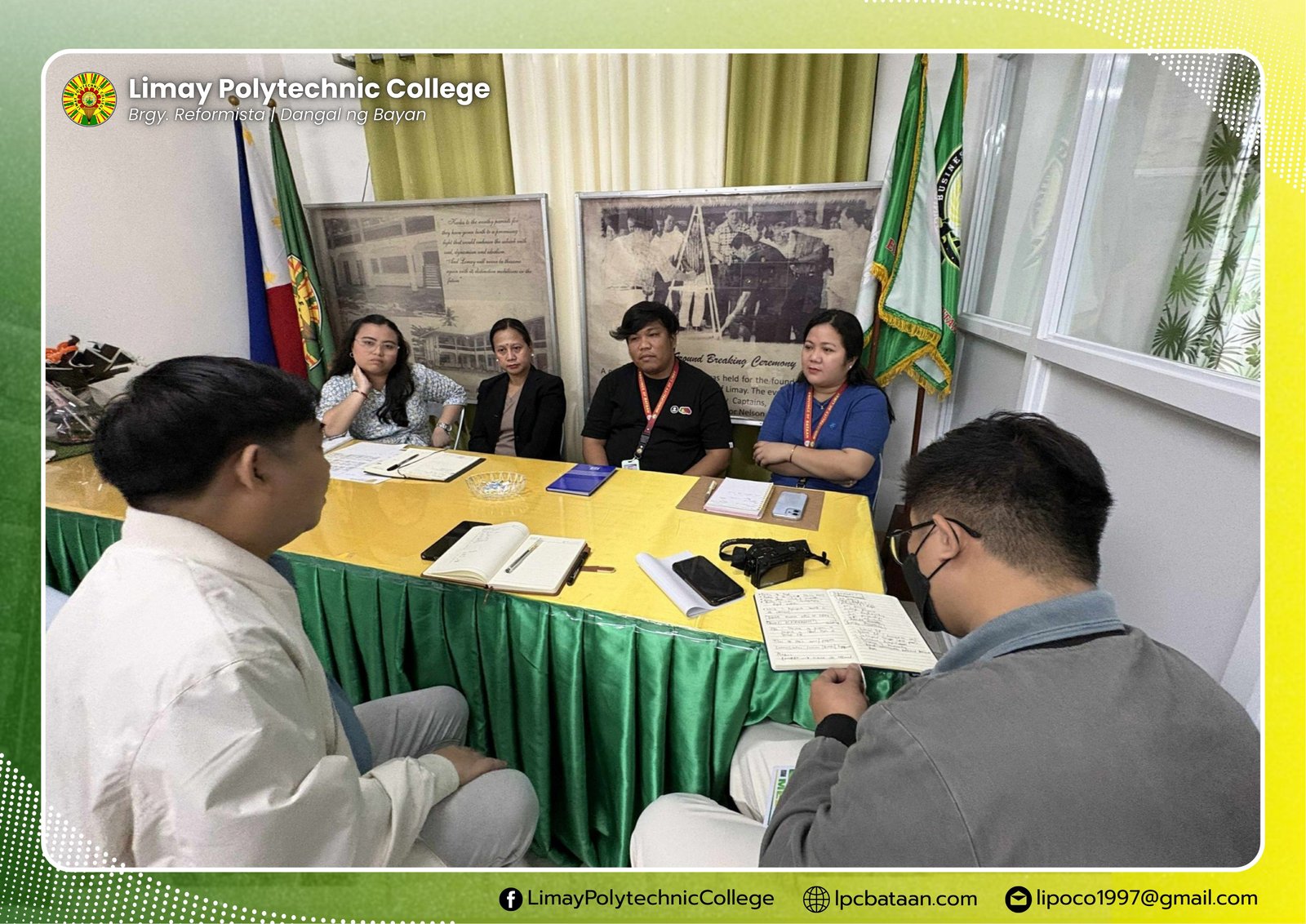 In response to RA 7079 or An Act for the Development and Promotion of Campus Journalism, Limay Polytechnic College (LPC) President Dr. Elmer De Leon met the three advisers of LAMPARA Publication and laid down expectations on revitalizing and expanding its roles and functions to operational development of the institution and appropriating funds thereof.