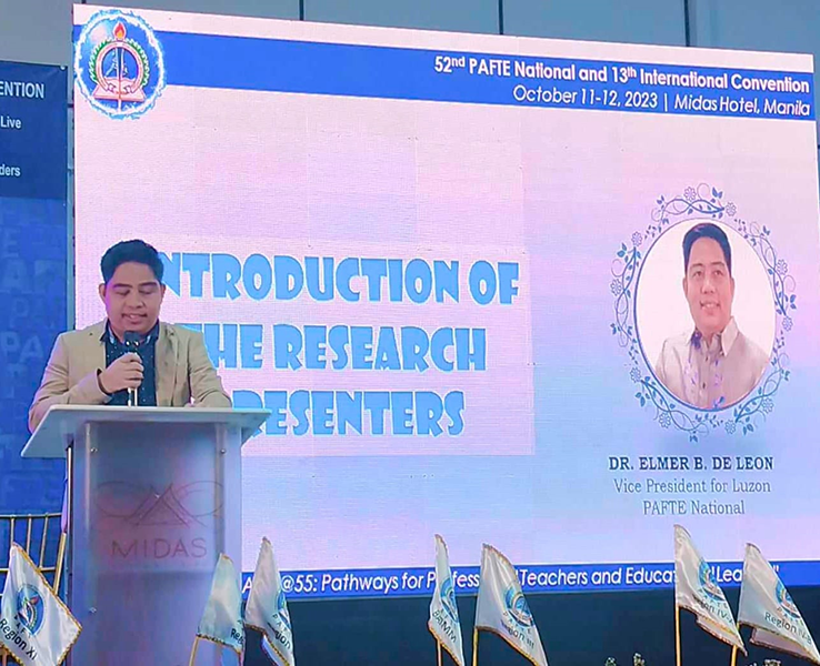 Dr. Elmer B. de Leon, LPC president and PAFTE vice president for Luzon joined other board and chapter officers, resource speakers, education dignitaries, agency officials and teacher education deans and faculty in the 52nd PAFTE National and 13th International Convention on October 11-12, 2023 at the Midas Hotel, Pasay City with the theme: PAFTE @55: Pathways for Professional Teachers and Educational Leaders. Education dignitaries and career pathway advocates graced and oriented participants on relevant concepts, details, issues and concerns. Plenary sessions, research presentation, updates from partner agencies and open forum completed the two-day coveted confabulation. Dr. De Leon was assigned to introduce the research presenters and facilitate the presentation for two days while he assisted in the program. More so, he was re-elected by the delegates in the board after his current stint expires in 2024. To note, some faculty members in the Department of Teacher Education at LPC also joined the event via Microsoft Teams.