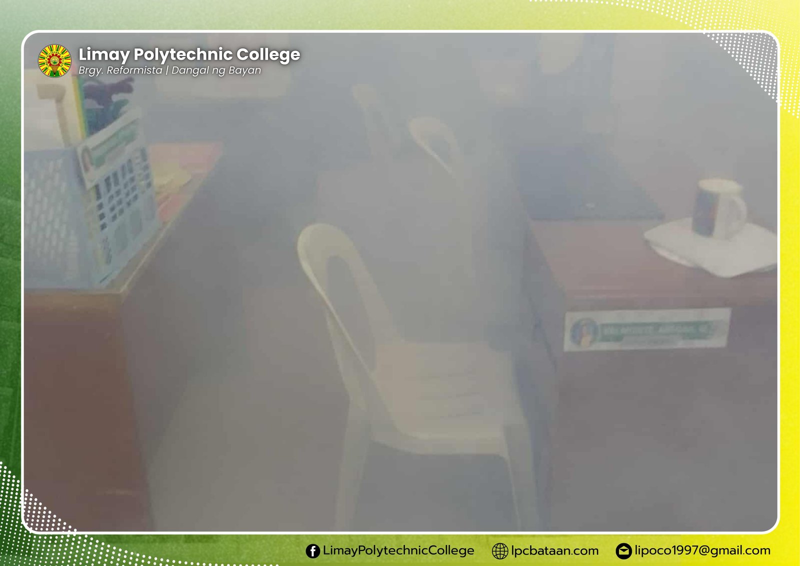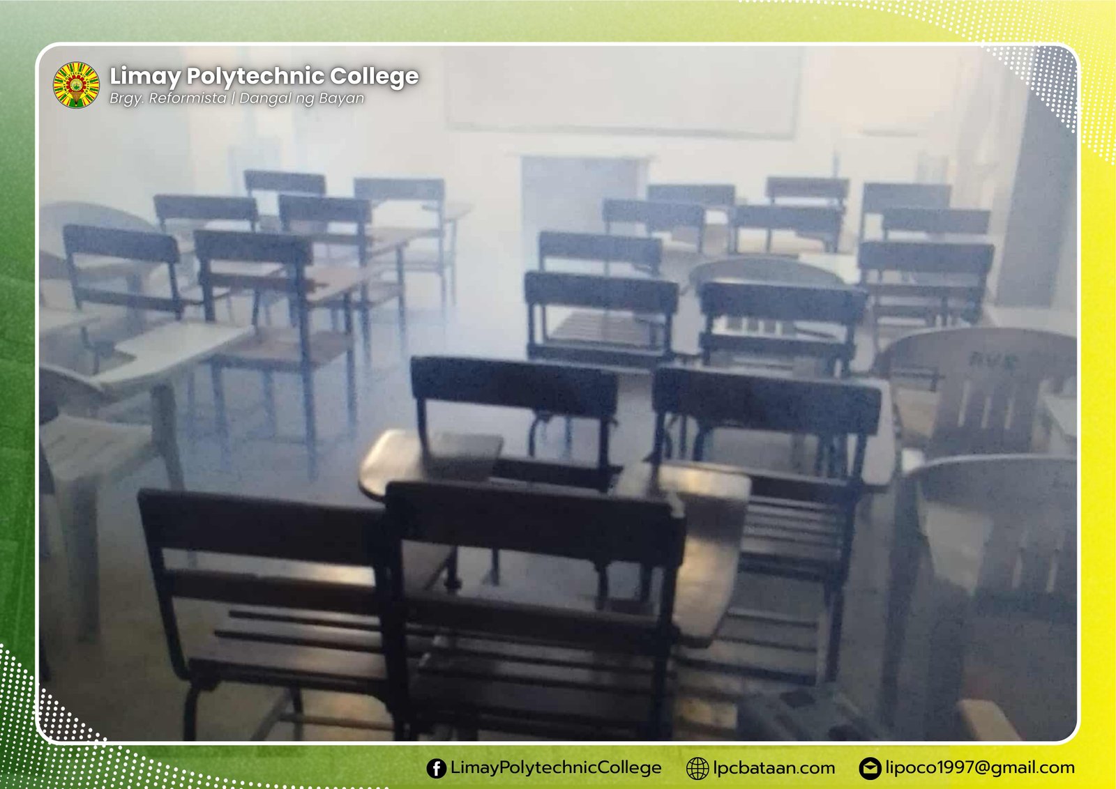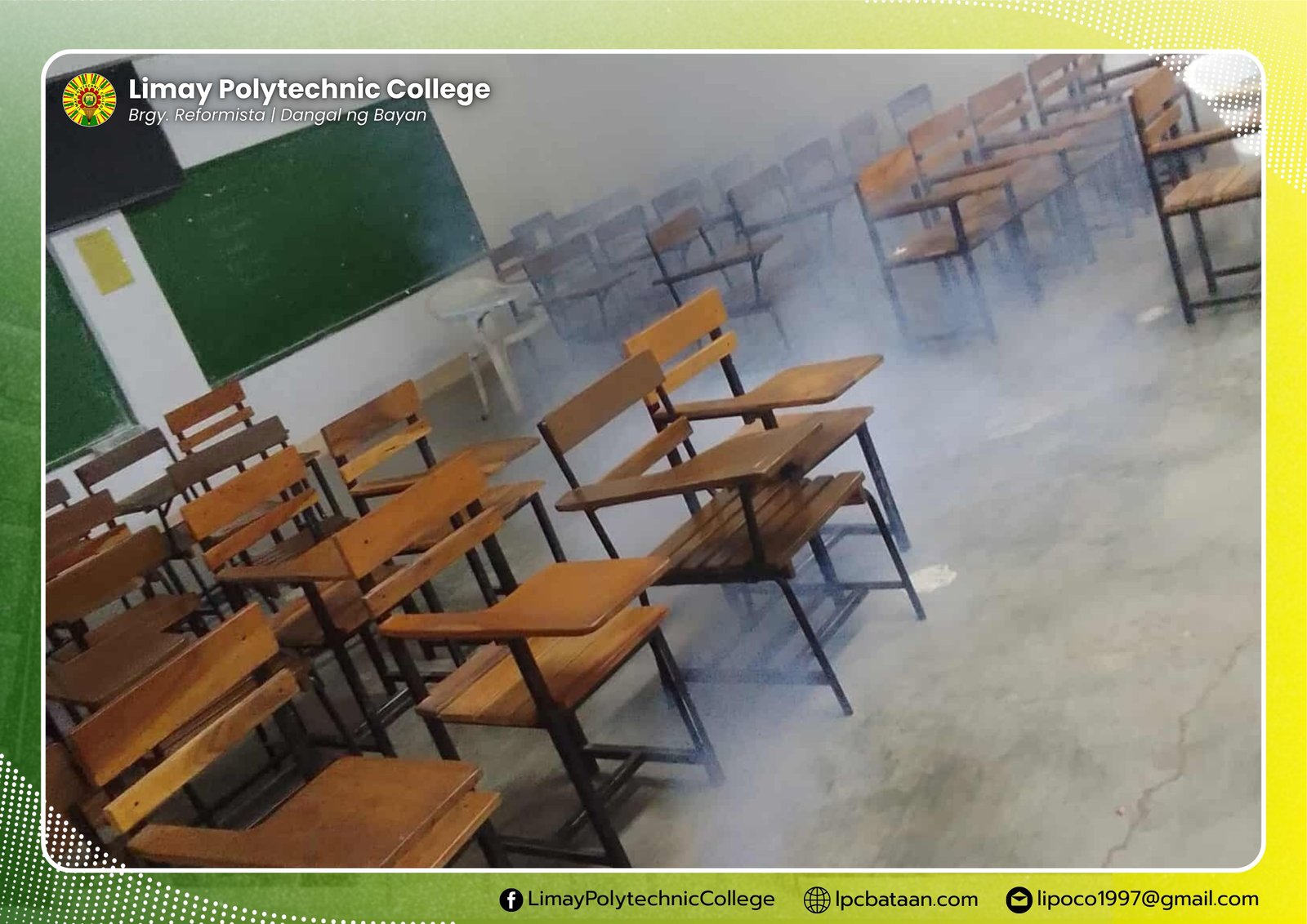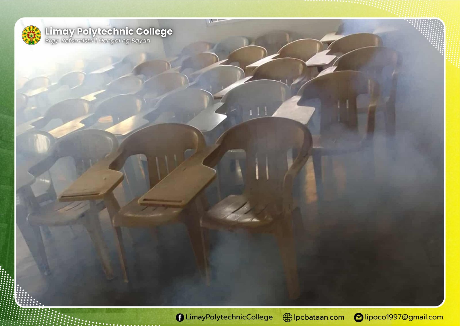 In order to prevent the wide spreading of viruses that cause flu and colds, Limay Polytechnic College (LPC), upon the request of the president, underwent fogging and disinfection in the classrooms, offices and facilities.