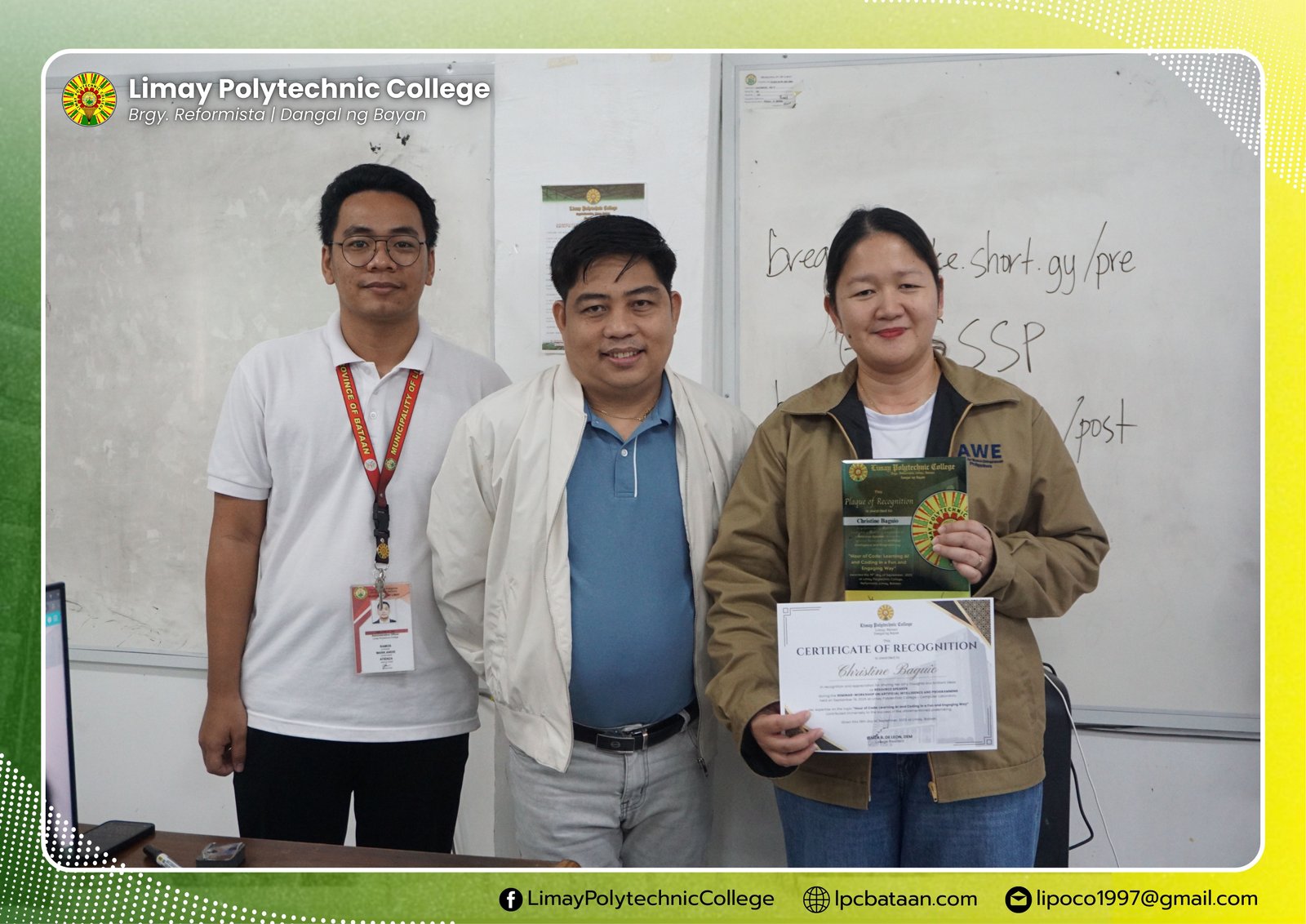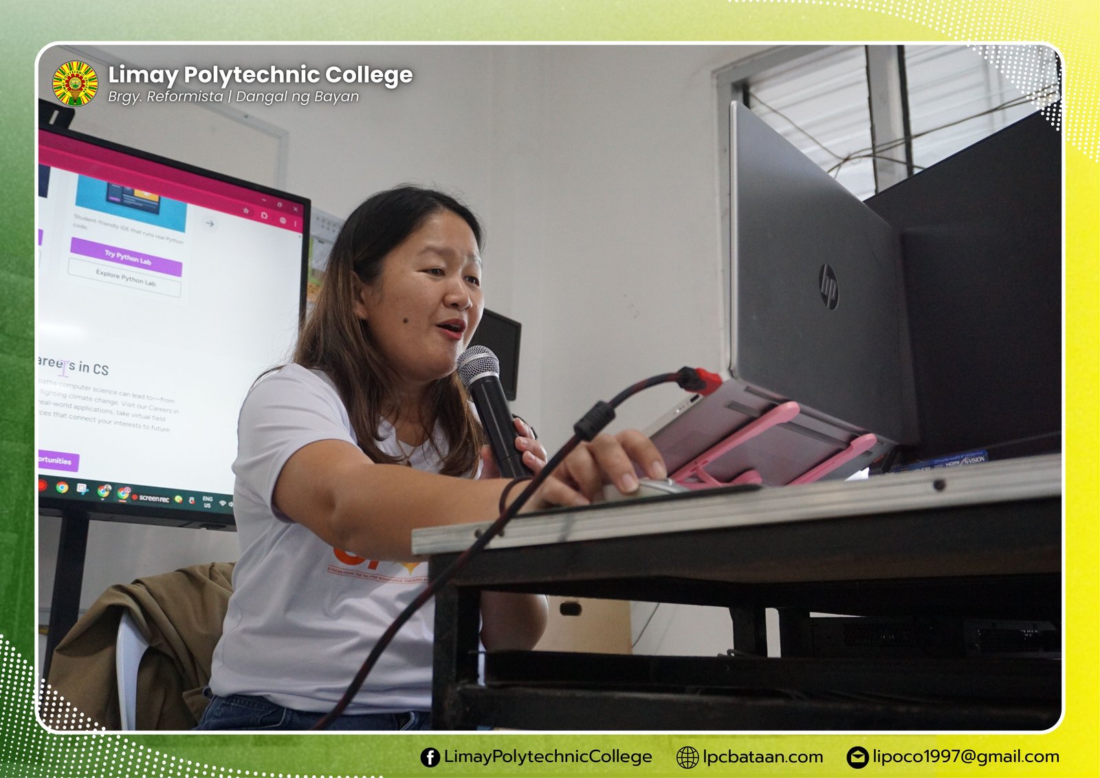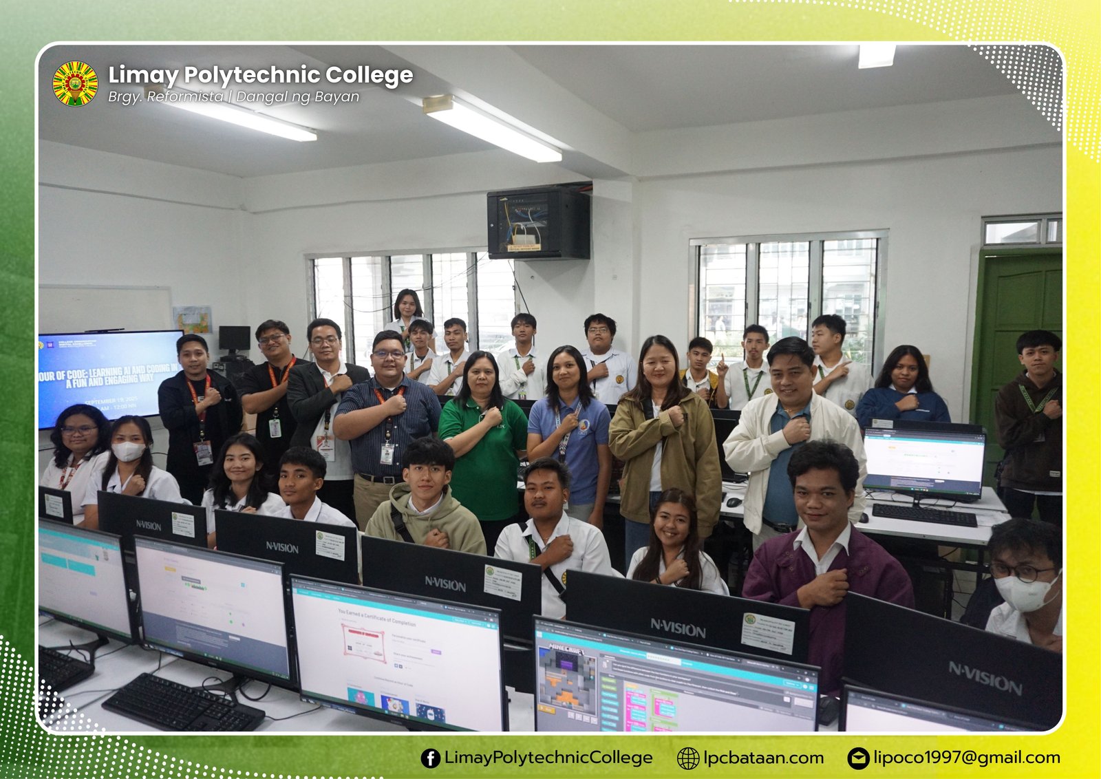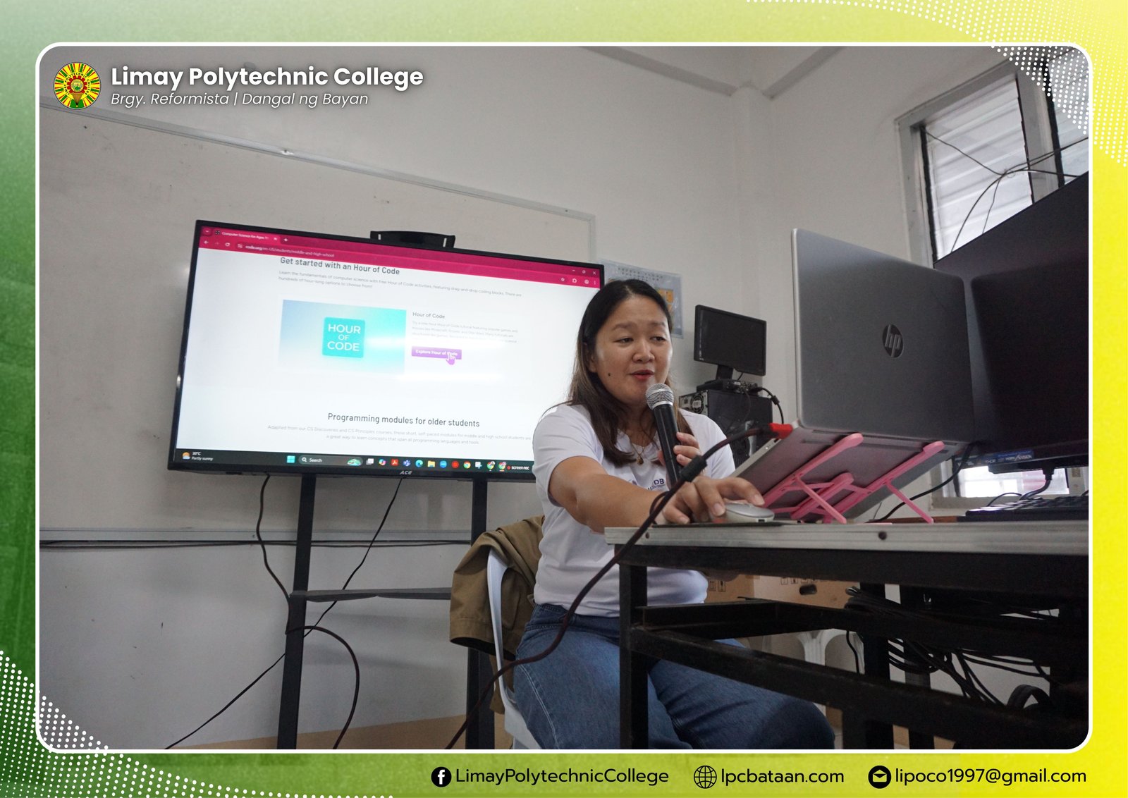 Sa layuning itaguyod ang kabuuang kaalaman sa digital literacy at paunlarin ang kakayahan sa programming at AI, nagsagawa ang Information Technology Education (ITE) Department ng Limay Polytechnic College (LPC), sa pakikipagtulungan sa Department of Information and Communications Technology (DICT) ng isang seminar na pinamagatang “Hour of Code: Learning AI and Coding in a Fun and Engaging Way” noong Setyembre 19, sa LPC Computer Laboratory.